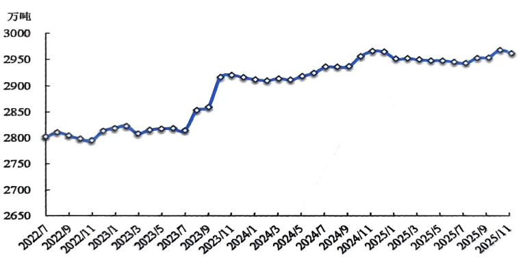 根据国际铝业协会(IAI)的统计,2025年1-11月份全球电解铝累计产量(不含中国)为2705万吨,较上年同期小幅增长0.6%,整体供应能力较去年年底没有特别明显的变化;2025年11月份日均产量为8.1万吨,较年初增长0.5%。