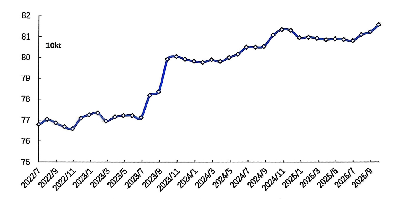 经调整,10月份产量为376.6万吨;预计11月份产量为364.2万吨,同比增长0.8%,日均产量约12.16万吨。