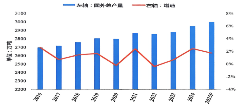 根据国际铝业协会(IAI)的统计,2025年1-11月份全球电解铝累计产量(不含中国)为2705万吨,较上年同期小幅增长0.6%,整体供应能力较去年年底没有特别明显的变化;2025年11月份日均产量为8.1万吨,较年初增长0.5%。